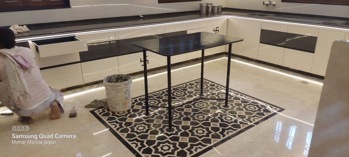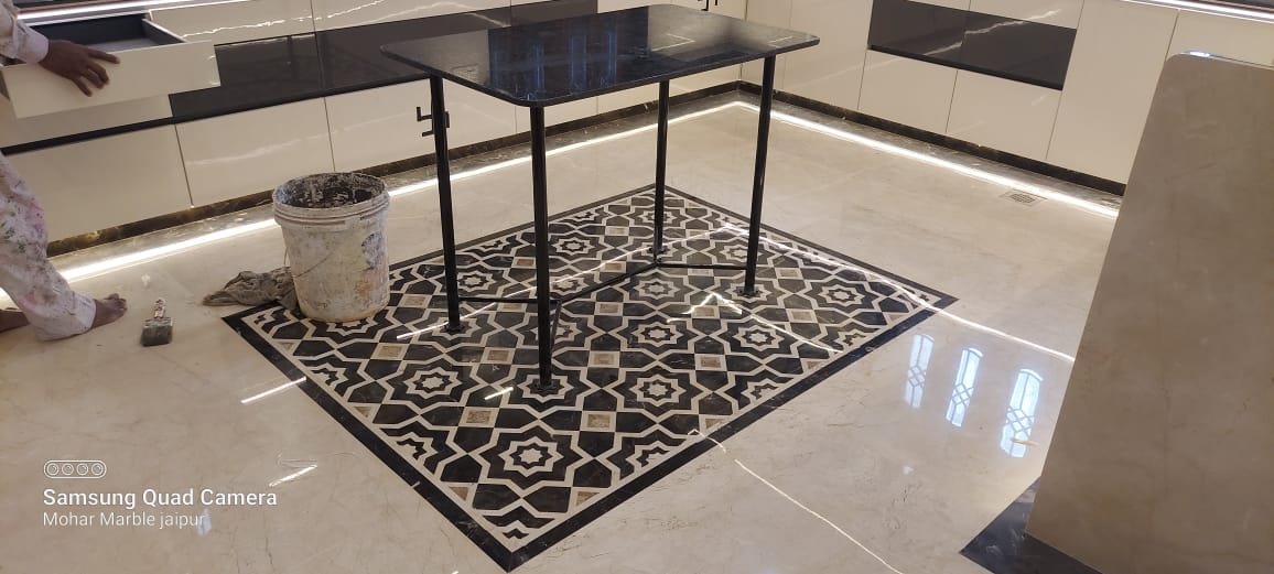 Detailed marble inly work that adds artistic elegance to walls, floors, and custom spaces.